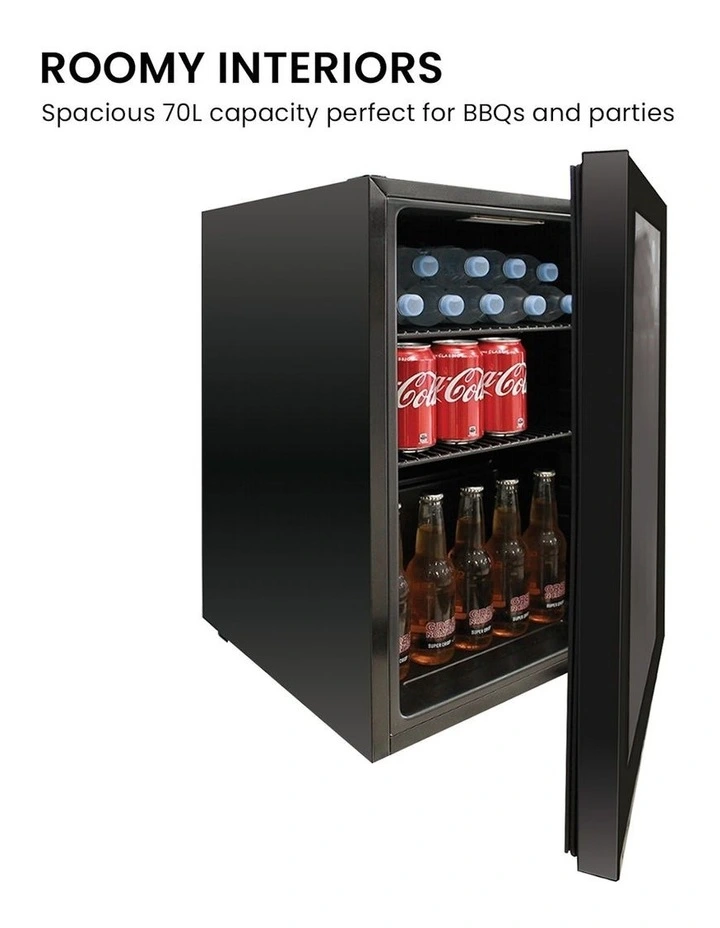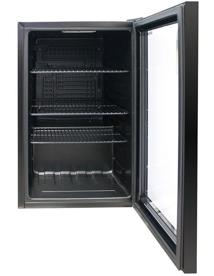 With a double-glazed glass door, this mini fridge lets you and your guests select the perfect refreshment at a glance. Talk about energy-saving!