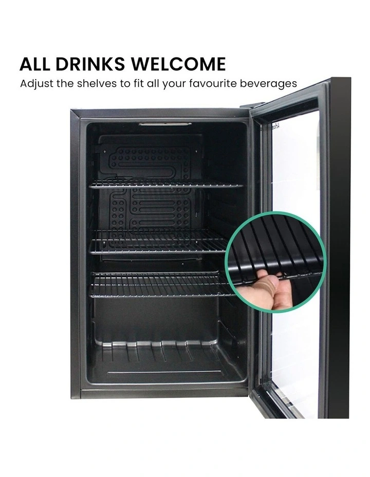 With five temperature settings and a range of 0-10C, this fridge will keep your drinks perfectly chilled. The shelf can be adjusted to fit wine, soda and beer (plus all your other favourites). Plus, the reversible door and built-in LED lamp allow for hassle-free serving!