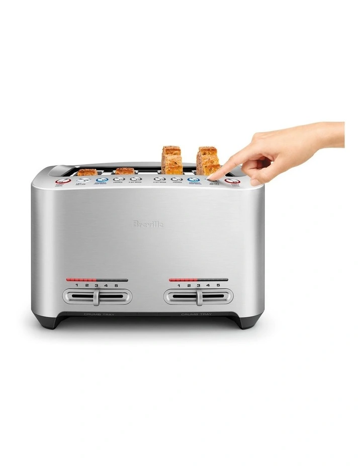 - Additional Features: Dual independent controls allow each pair of toasting slots to work independently, Motorised Lifting Mechanism, Cord Storage, 4 extra wide and deep toasting slots, LED Progress Indicator
