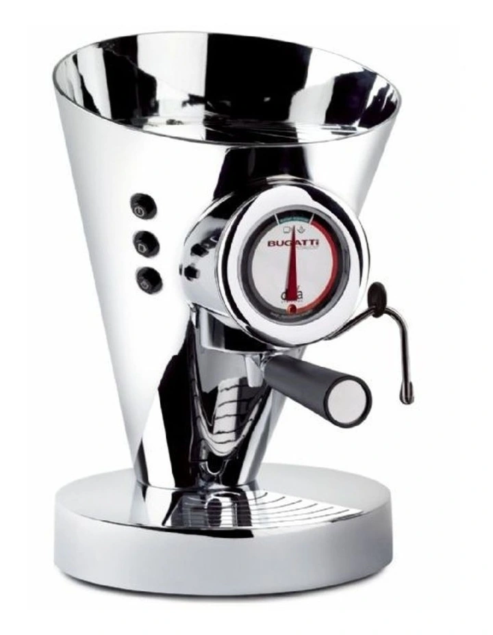 Diva, in the chrome version. Whether you use ground coffee or coffee pods, whether you want cappuccino or latte macchiato, the innovative technique allows you to enjoy your coffee just the way you like it.Playful, retro style