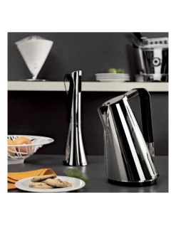 Designer: Andreas SeegatzThe lid opens through a light touchThe body is 360 movableOn the handle there is a window that allows to check the water levelMade of 18/10 stainless steel it is provided with removable anti-limestone filterShiny FinishCapacity: 1.7LΒ Power: 1830-2180WMaintenance: Before using read carefully the instructions manualColour: ChromeMaterial: Stainless SteelMade in: ChinaΒ Included: 1x KettleΒ Warranty: 2 Year WarrantyΒ Dimensions (H x W x L): 22.5 x 18 x 32cmWeight: 2kg