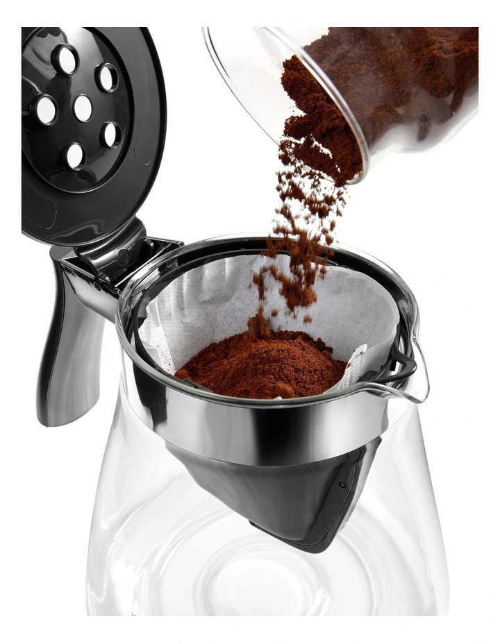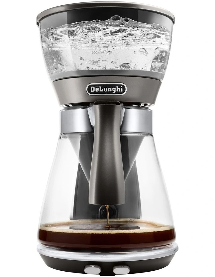 Introducing the De’Longhi Clessidra High Quality Coffee Maker.Β This filter type coffee machine offers one touch brewing with a precise thermostat which guarantees high brewing temperatures.Β Showerhead designed water dispenser and a jug warmer base to keep your coffee warm for up to 40 minutes.Β The Clessidra Coffee Maker has a 1.25L Capacity making 10 cups of perfectly brewed coffee.Β It has a Glass Carafe & anti drip system, water level indicator & V shape removable paper filter.