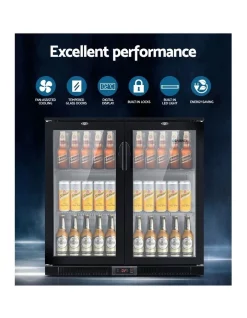 Our spacious Devanti Bar Fridge with double doors is great for keeping a variety of food and beverages chilled and cooled. Designed with adjustable temperature settings between 2C and 10C, the energy-efficient bar fridge lets you set your desired coolness and freshness. Other great features include fan-assisted cooling, LED temperature display, heavy-duty adjustable shelves, double-glazed tempered glass doors, built-in handles and consistent refrigeration to name a few. The bar fridge is also totally eco-friendly with its R600a freon-free refrigerant and well-made for robust use, such as the pressure-injected foam insulation and built-in LED light to ensure operation is smooth, quiet and hassle-free. The fridge also comes with built-in locks to keep the contents safe and secure, especially useful in a retail environment after you close for the night. Perfect for commercial environments such as bars, dessert shops, cafes and restaurants, the Devanti Bar Fridge is a cool investment time and again.