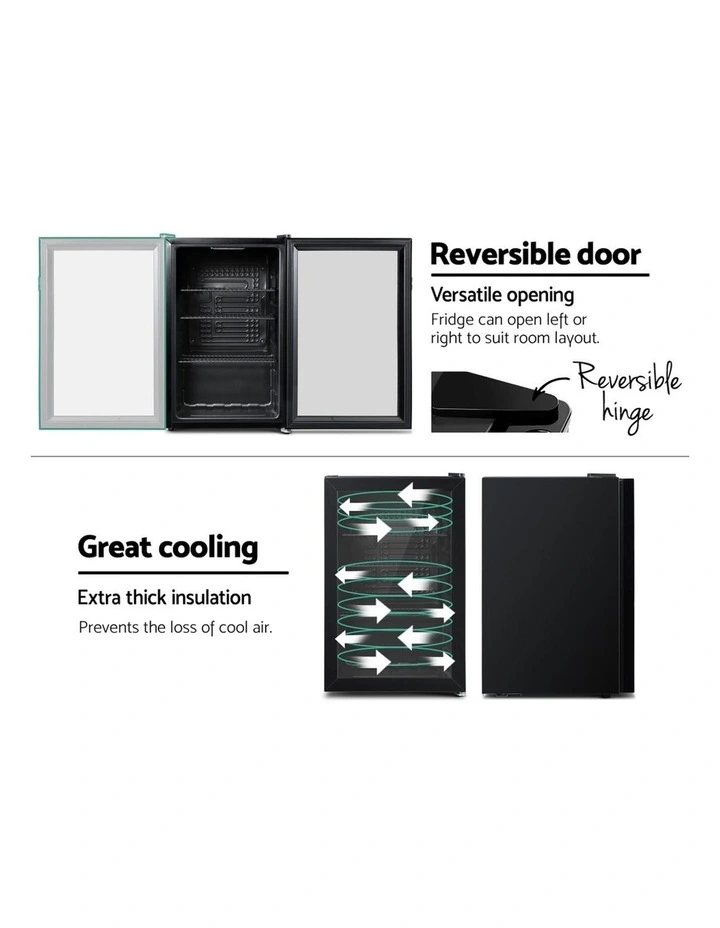 The portable Devanti Bar Fridge is great for keeping a variety of food and beverages chilled and cooled and without taking up too much space. Designed with five temperature settings, the energy-efficient bar fridge lets you set your desired coolness and freshness. Other great features include adjustable shelves, double-glazed door, height-adjustable feet, built-in handle, reversible door and consistent refrigeration to name a few. The compact bar fridge is also totally eco-friendly with its R600a freon-free refrigerant and well-made for robust use, such as the PVC door seal gasket, extra thick insulation and a built-in LED lamp to ensure operation is smooth, quiet and hassle-free. Whether you use it as a secondary fridge or a mainstay, the Devanti bar fridge is a cool investment time and again.