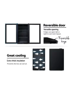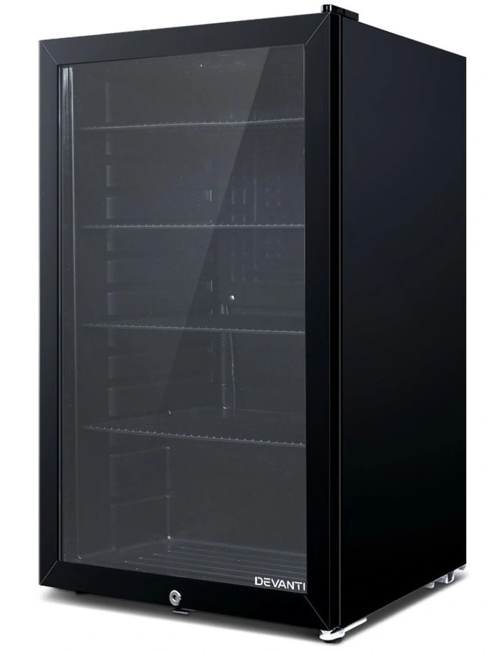 Our portable Devanti Bar Fridge is great for keeping a variety of food and beverages chilled and cooled without taking up too much space. Designed with seven temperature settings, the energy-efficient bar fridge lets you set your desired coolness and freshness. Other great features include adjustable shelves, double-glazed door, height-adjustable feet, built-in handle, reversible door and consistent refrigeration to name a few. The compact bar fridge is also totally eco-friendly with its R600a freon-free refrigerant and well-made for robust use, such as the extra thick insulation and a built-in LED lamp to ensure operation is smooth, quiet and hassle-free. The fridge also comes with a built-in lock to keep the contents safe and secure, especially useful in a retail environment after you close for the night. Suitable for both domestic and commercial use, the Devanti bar fridge is a cool investment time and again.