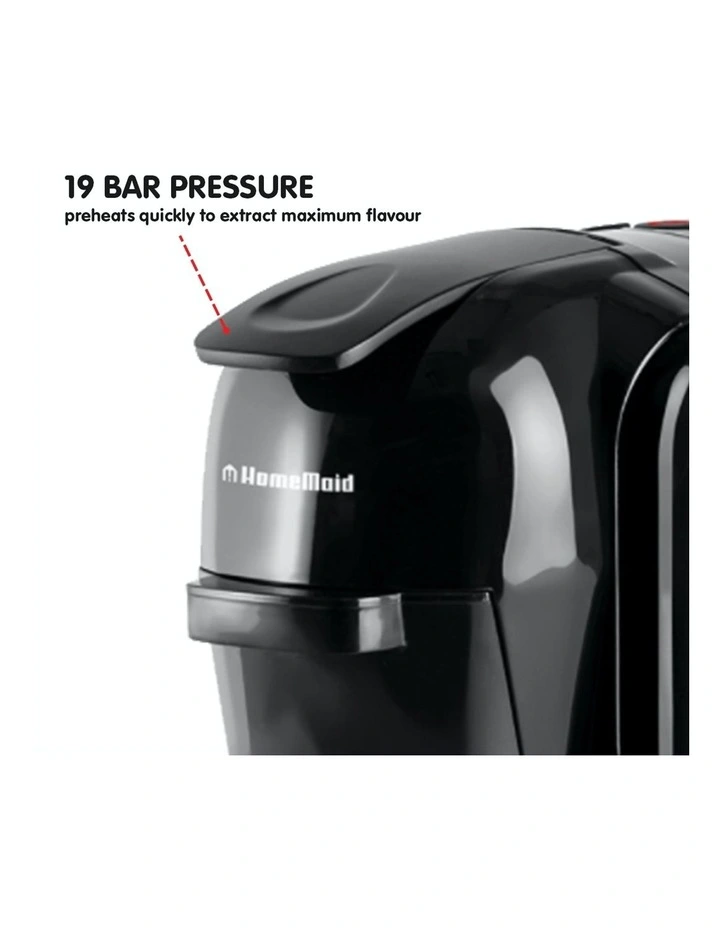 At home or in the office, brew a delicious cup with HomeMaid’s multi-capsule coffee machine. This compact espresso maker comes with three adapters perfect for use with your favourite grounds or Nespresso and Caffitaly pods.
