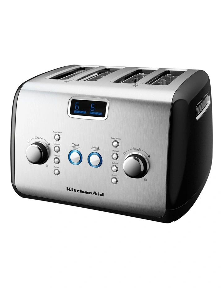 Preparing deliciously golden toast and crumpets is easier than ever with the KitchenAid Artisan Toaster. The motorised lift button gently lowers and raises your bread, and the blue LCD display keeps track of your personal settings, so you can enjoy your toast just the way you like it, every morning.