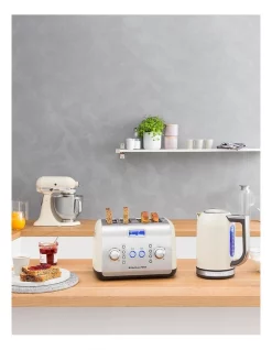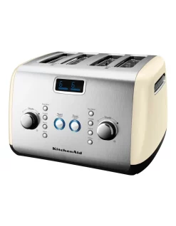 Preparing deliciously golden toast and crumpets is easier than ever with the KitchenAid Artisan Toaster. The motorised lift button gently lowers and raises your bread, and the blue LCD display keeps track of your personal settings, so you can enjoy your toast just the way you like it, every morning.
