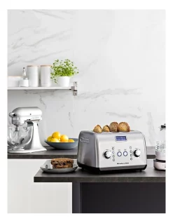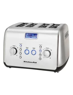 Preparing deliciously golden toast and crumpets is easier than ever with the KitchenAid Artisan Toaster. The motorised lift button gently lowers and raises your bread, and the blue LCD display keeps track of your personal settings, so you can enjoy your toast just the way you like it, every morning.