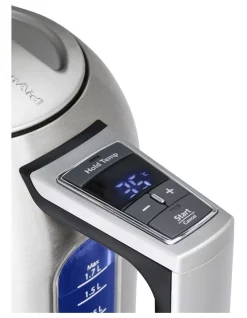 Built for speed, this 1.7L Electric Kettle quietly boils your water faster. The variable temperature control allows you to select the exact temperature you desire (from 50C to 100C). The Keep Warm function keeps water hotter for longer. A digital temperature display allows you to see the required temperature for Green Teas, Porridge and more with LED functionality away from the base.