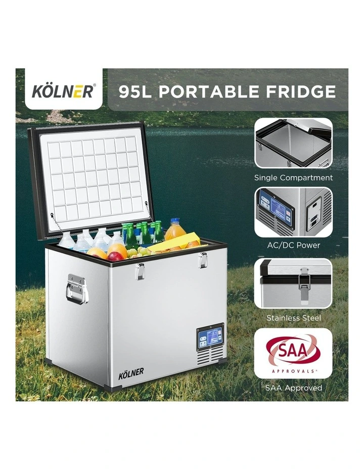 Keep food fresh on the go with the Kolner 95L Portable Fridge/Freezer. Now with a spacious single compartment, this fridge lets you store freshly caught fish, large cuts of meat, bulk frozen food and enough beverages for a crowd.